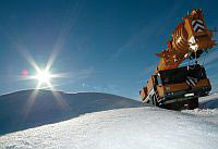 sattorangenen 160-Tonners von Liebherr hervor. Testfahrer Josef Dentler