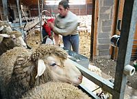 Auch die Schur im März im großen Stall in Donnstetten hat heute ein anderes Flair: Musik vom Radiosender, fröhliche Geschäftigkeit. Eine Scherkolonne vom Bodensee mit fünf jungen Männern, denen der Schweiß trotz der winterlichen Temperaturen auf der Stirn steht, arbeitet im Akkord. Sie bringen den Spezialwagen mit, auf den die Tiere durch eine schmale Gasse gelenkt werden, ebenso Messer und Kämme. Ich brauch bloß Strom, lobt Dangel die Neuerungen der Zeit. 800 Schafe schaffen sie pro Tag. Damals war Sauberkeit das oberste Gebot, keine Spinnwebe durfte mehr an der Decke hängen, erinnert er sich. Die Wolle vom Rücken und der Seite legten sie als ganzes Vlies vorsichtig zusammen. Wir behandelten es wie Gold, so wertvoll war das. Heute, dank Reinigungs-verfahren, stampfen die Töchter Melanie und Tina die Wolle in einem großen Sack zum Verpacken mit den Füßen zusammen. Trotz rationellen Ablaufs deckt der Wollpreis wegen billiger Auslandseinfuhr die Kosten der Schur nicht. Die Wolle aber muss runter, der Hygiene wegen.