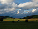Die Au mit Blick vom Steinbruch Salzwinkel auf Donnstetten: Wilde Wolken – bis zum 6. August brannnte die Sonne extrem aufs Land. Bis zu 32 Grad Celsius. Dann am 7. 8. abends ergoss sich die schwere Luft. Einströmende Kaltluft verursachte diese Wolkenbildung. (© 8. 8. 2008)