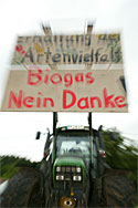 Münsingen, 18. Juli 2008: Landwirte und Bürger machen mobil gegen die geplante Biogas-Anlage in Münsingen. weiter >>