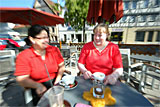 Münsingen: Die Inhaberin des Café Moritz, Karin Feucht (im Bild rechts), hat einen Kinderkeks entwicklet aus regionalem Getreide. Dieser Biokeks... (© 1. 10. 2008)