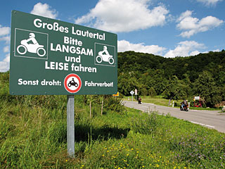 Umso mehr bewegen sich die Muskeln der Radler, wenn sie im Wiegetritt den Lenker im verschwitzten Händegriff von links nach rechts drücken. Aus dem Schmiechtal hinauf, vorbei an einem mächtigen eichenhölzernen Mühlenrad führt ein kaum fünf Meter breites Asphaltband in den sonnendurchfluteten Schatten der Hangbuchenwälder. Ein Highlight bietet der Streckenabschnitt von Zwiefalten entlang der Zwiefalter Aach (ein Abstecher zur Wimsener Höhle lohnt, alleine schon wegen der dort feinen Gastronomie). Hier, auf diesem in engen Schwüngen an die Talkante geschmiegten Sträßchen fühlt der Radler: Urlaub pur. Wenn er dann noch die Steige durch das enge, schattige Trockental in Richtung Hayingen hochdrück, ist er endgültig während dieser fünf bis sechs Stundentour dem schnöden Alltag entrückt. Ein wenig mehr Trubel bietet dann das kurvige Lautertal. Am Wochenende ist dieser Streckenabschnitt beliebt bei motorisierten Sommerfrischlern. Allerdings können und dürfen sie nicht besonders schnell fahren, was den Geschwindigkeitsunterschied zu Rennradlern angenehm reduziert.