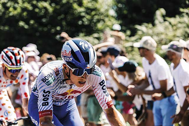 Der Laichinger Florian Lipowitz bei der siebten Etappe der Tour de France 2025 in der Bretagne unterwegs (197 KM). Foto: 11. Juli 2025 Maximilian Fries / Red Bull Content Pool