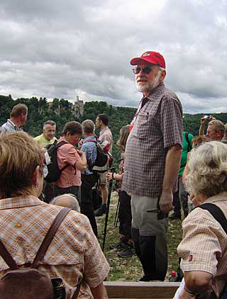 die seit einem Jahr nun auf der Schwäbischen Alb rund um den ehemaligen Truppenübungsplatz Münsingen unterwegs sind. Die Natur- und Landschaftsführer des Biosphärengebietes legten eine Prüfung ihrer mehrtägigen Aus- und Weiterbildung ab. Eine Urkunde zeichnet diese Akteure als unverzichtbare Multiplikatoren aus, für die Ziele und Entwicklung des UNESCO-Großschutzgebietes Biosphärenreservat Schwäbische Alb einzutreten. Gästegruppen und Veranstalter können dieses geballte Alb-Know-how buchen ab rund fünf bis neun Euro pro Tour und Person und maximal 30 Teilnehmern. Auch Rolf Herzig (Foto) hatte fleißig 100 Stunden lang die Schulbank gedrückt. Der Reutlinger „Albdraufgänger” weiß nun über Gemeinsamkeiten und Unterschiede von Biosphärengebiet und Geopark genauestens Bescheid. Er kennt die Bedeutung von Körpersprache und Rethorik im Umgang mit Gästen – und ganz wichtig – wie ein mobiles Tourismusbüro kennt er alle Angebote der drei Biosphärenlandkreise.