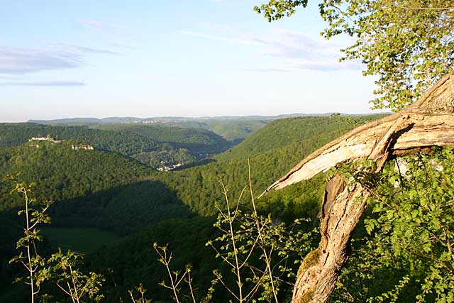 Foto Hohen Urach: Typisch Schwäbische Alb – bis zu 400 Meter stürzt die Hochfläche wie hier ins Ermstal hinab. Härter kann der Kontrast kaum sein. An dieser markanten Hangkante gehen die Hitze der Ballungsgebiete und die Kühle des kargen Hochlands auf Tuchfühlung. Genau dieser faszinierende Kontrast war es, der dem UNESCO-Antrag die thematische Ausrichtung gab. Der urbane Charakter gilt als Alleinstellungsmerkmal unter den 15 nationalen Biosphärenreservaten. Das Spannungsfeld zwischen Natur und Mensch, Wirtschaften und Schützen soll das Biosphärengebiet Schwäbische Alb als Modellregion beispielhaft lösen.