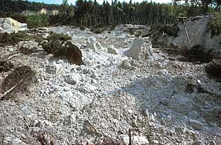 Als sich am Folgetag der Nebel verzog, klaffte eine Wunde im Albtrauf, weit vom Unterland sichtbar. Auf 600 Meter Breite hatten sich die von den enormen Niederschlägen aufgequollenen Gesteinsschichten gelöst. 4 Millionen Kubikmeter Erde und Geröll waren mit allem, was darauf wuchs und lebte zu Tal gerauscht, insgesamt wog der Erdrutsch über acht Millionen Tonnen. Die Rutschzunge reichte einen Kilometer ins Tal, eine Realität, die Hollywood- Katastrophenszenarien leicht in den Schatten stellte. Aber Regen und Nebel hatten auch das infernalische Grollen verschluckt.
