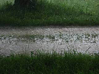 Zwischen Unterhausen und Honau wurde ein Waldweg ausgespült. Das Gesteinsmaterial hat den Ablauf im Wassergraben neben der Straße unterbunden, so dass leichte Schäden am Bankett der Straße auftreten. Die Stelle ist mit Baken abgesichert.