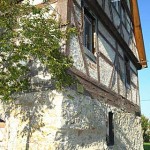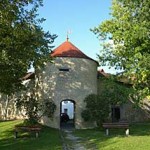 Gedrungen drückt sich der Turm an die Reste der alten Stadtmauer Hayingens.