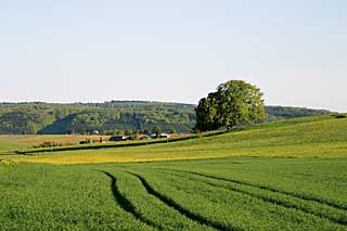 Schattenspiele: Vom Gestütshof St. Johann führt eine Allee zum Fohlenhof. Es empfiehlt sich ein Abstecher zum Aussichtsturm Hohe Warte (820 m)